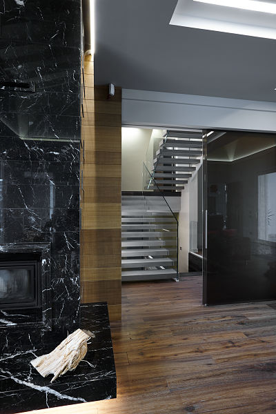L’Arch. Diego Perusko nello sviluppare il progetto di una nuova villa importante, situata nella provincia Emiliana, ha stravolto il progetto iniziale per creare un impatto imponente all’ingresso dell’abitazione e mettere la scala interna in primo piano abbattendo tutte le volumetrie e creare un unico volume aperto dove la scala fosse il centro dell’attenzione.