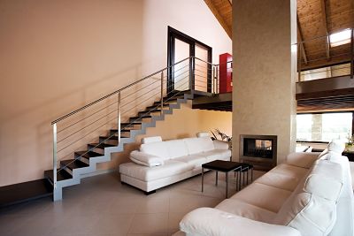 Una giusta impostazione in quanto, la scala interna è un complemento di arredo importante ed in questo caso è il primo elemento di design che si incontra entrando nell’abitazione perchè occupa sia l’ingresso che il soggiorno.